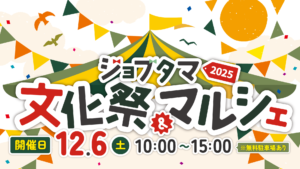 2025年10月3日 🎪ジョブタマ文化祭&マルシェ2025🎊 12月6日(土)に開催されるジョブタマ文化祭&マルシェの詳細ページです♪マルシェ出展者様のご紹介やイベントの詳しい内容は随時更新されます。 New▶ 11月26日更新!ページの一番下に商品などの情報を追加しました! […]
